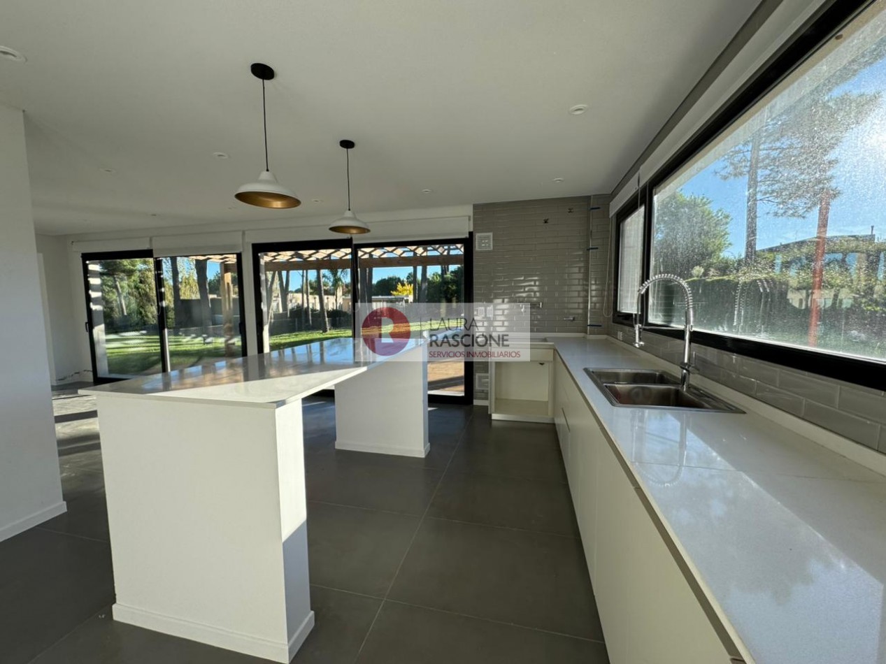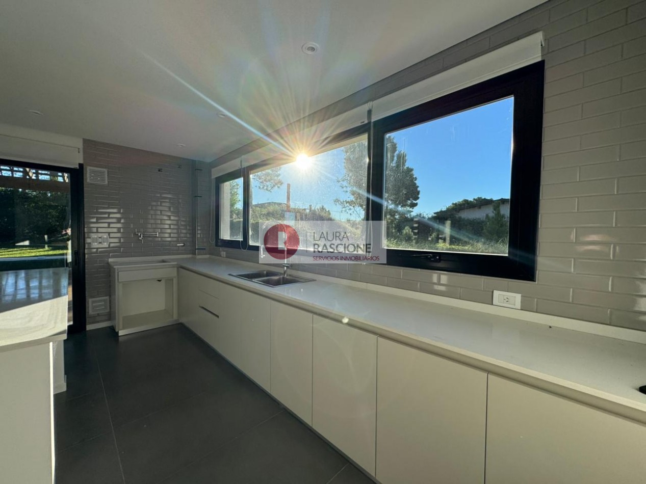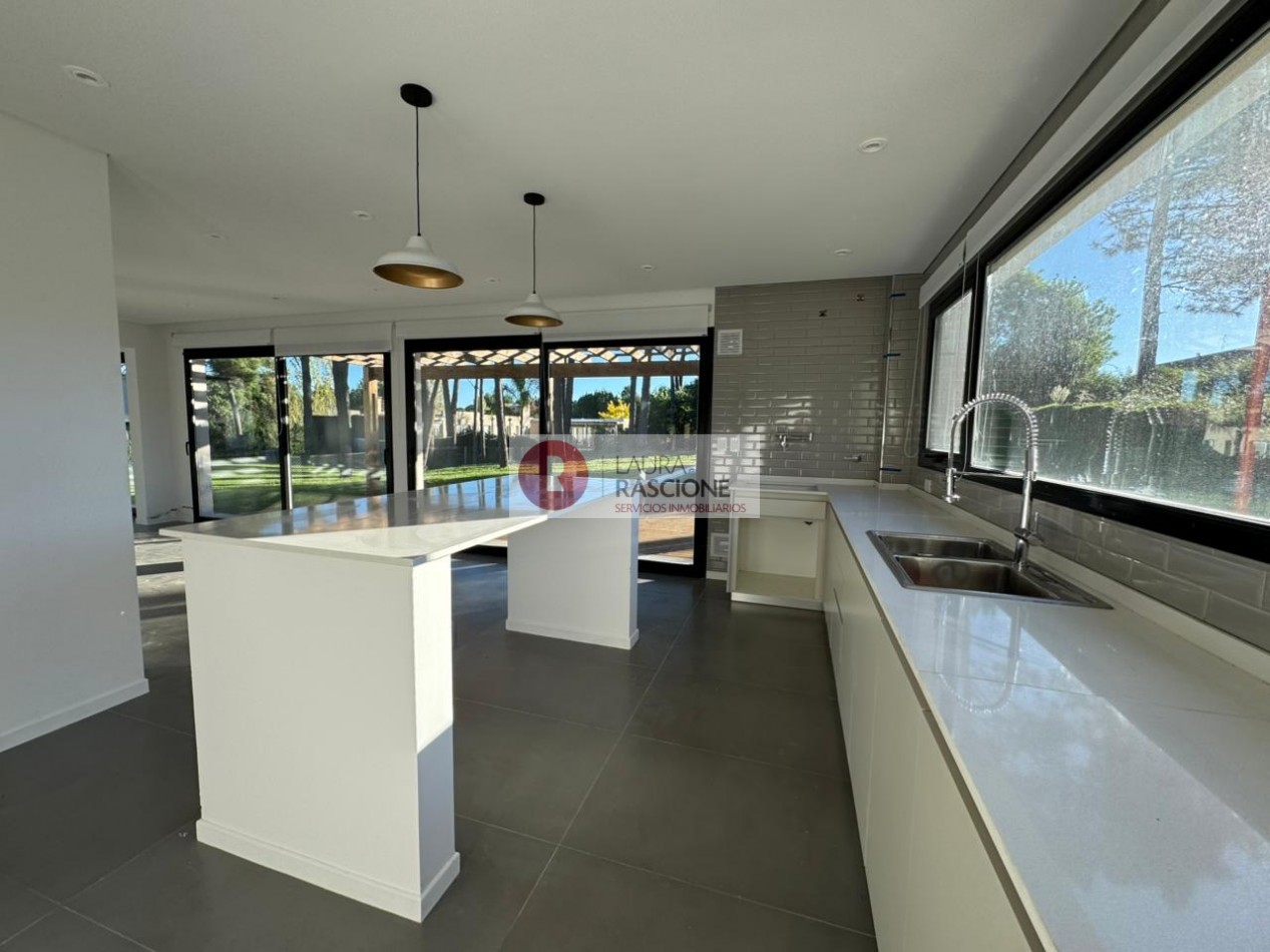 Una amplia cocina con isla que nos conecta a su living comedor integrado con amplios ventanales que nos brindan la visión hacia el parque arbolado.