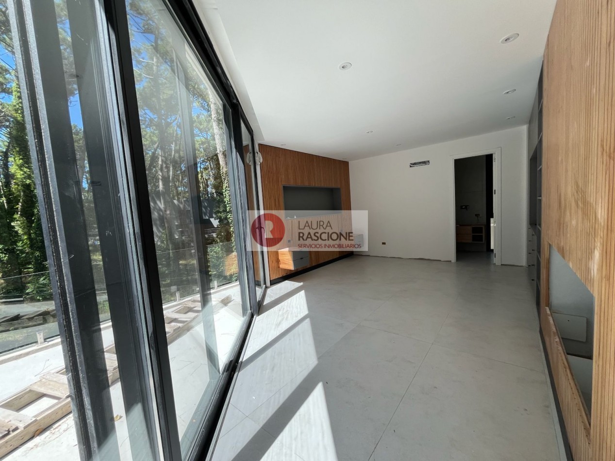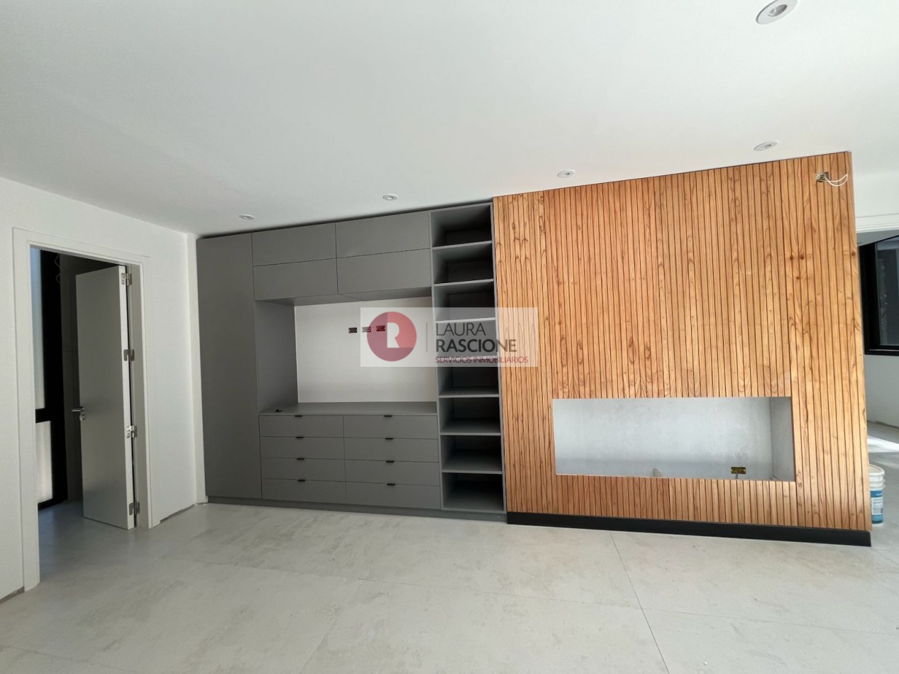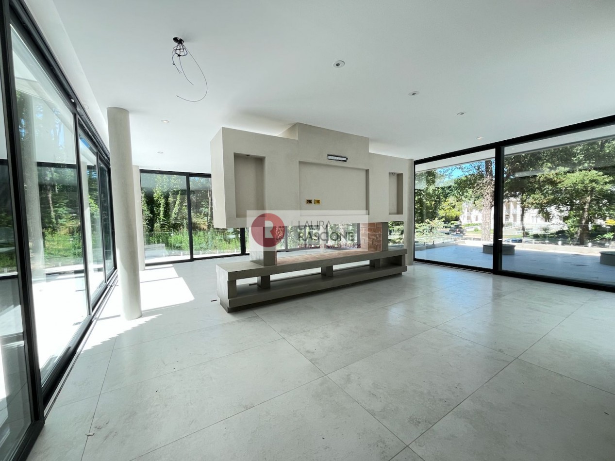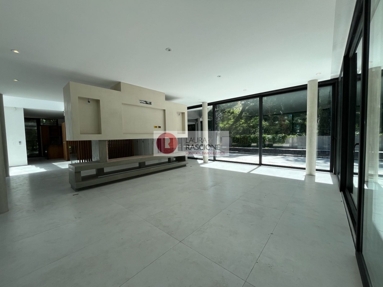 El nivel Planta baja se presenta como una planta abierta, permeable con diferentes situaciones de expansión e integración con el entorno inmediato; la misma cuenta con una gran cocina equipada con una vinoteca, almacén lacena e isla/ barra la cual se integra con el sector de parrilla exterior; por otra parte, se encuentra comedor y estar los cuales se encuentran enmarcados dentro del mismo ambiente, pero separados por una gran estufa hogar de dos frentes. También en dicho nivel se pueden apreciar expansiones y situaciones de balconeo en el frente y en el contra frente en el sector de la pileta exterior.