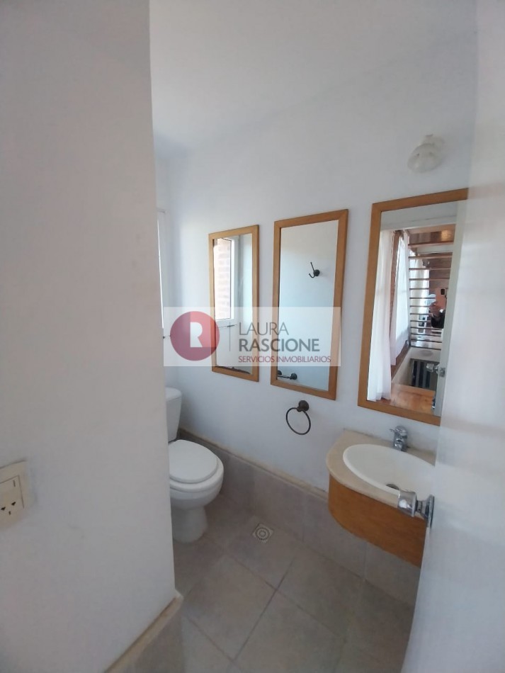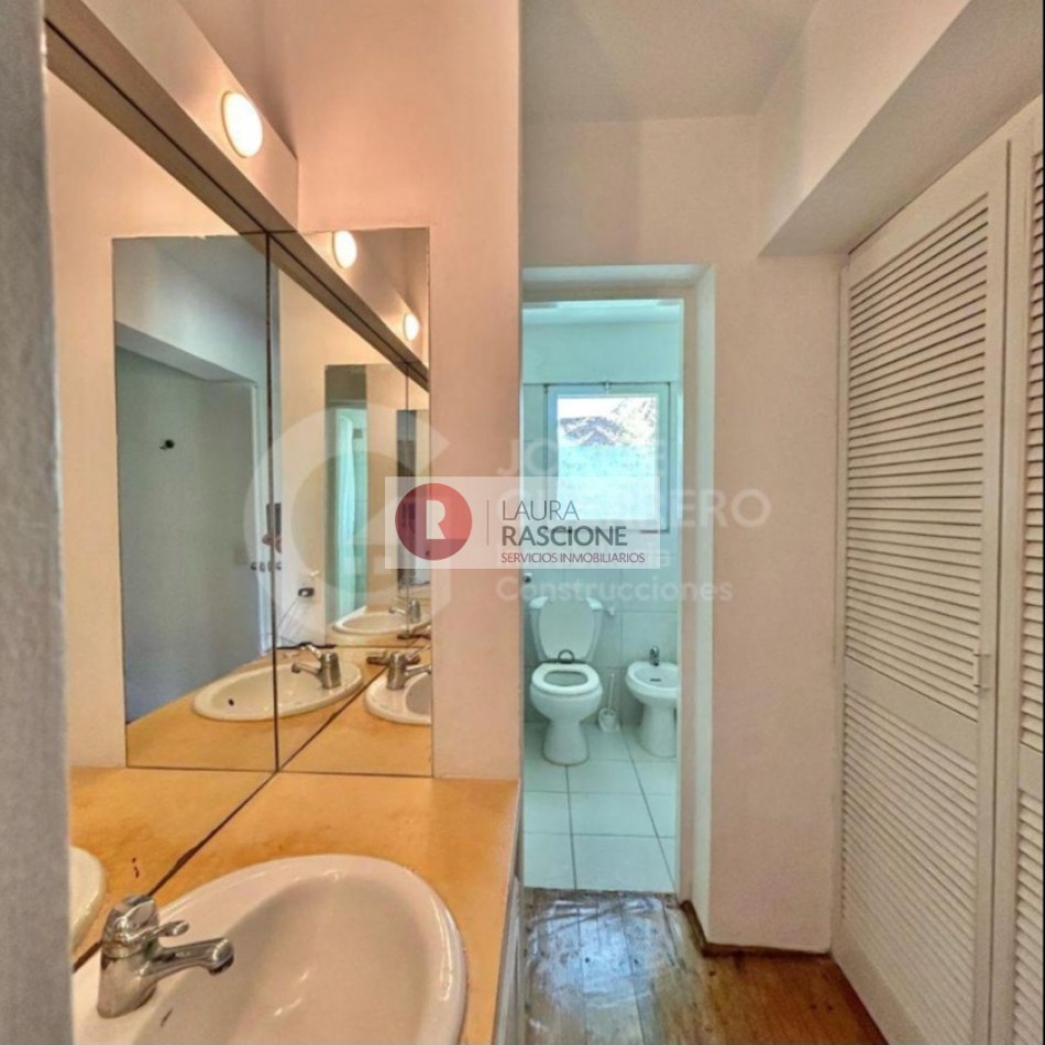 En el sector inferior se encuentra 1 baño completo, 3 dormitorios 1 de ellos en suite y acceso a la gran cochera cubierta, todos los dormitorios cuentas con vista al parque .