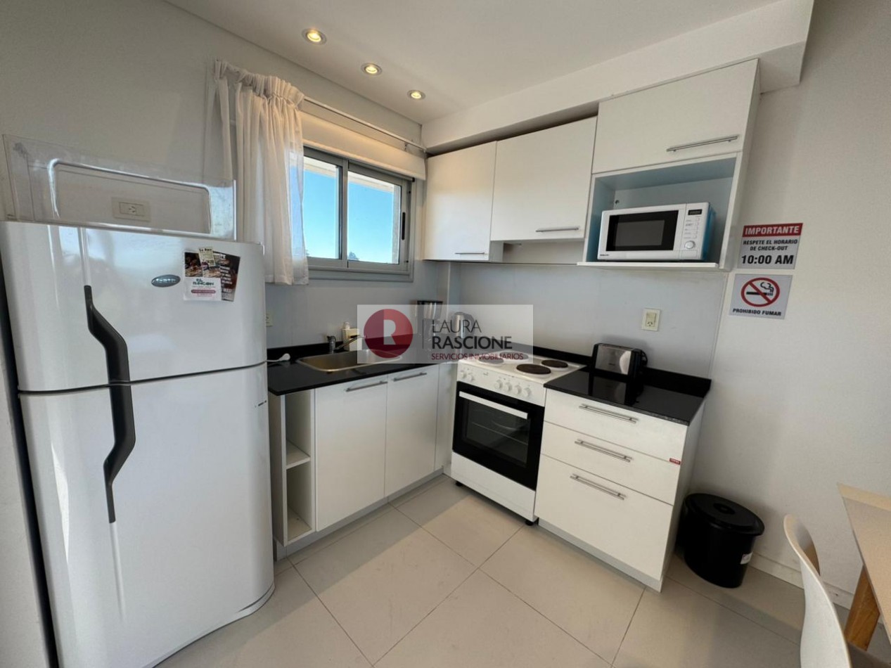 La unidad se ubica en tercer piso. Distribución: Living/comedor amplio con cocina integrada Baño con ducha Habitación principal con amplio placard con espejo y baño en suite, y segundo dormitorio. Cortinas roller. Aire frio calor en la habitación principal y living Totalmente equipados. Espacio con parrilla semicubierta