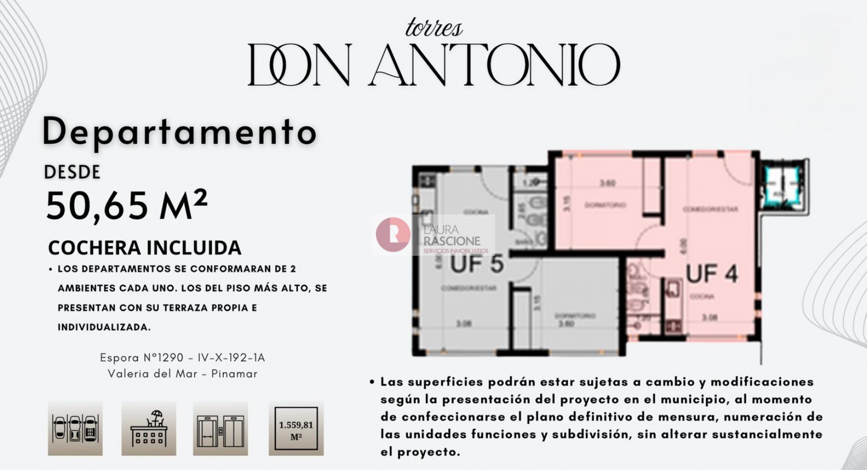 Las superficies podran estar sujetas a cambios y modificaciones segun la presentacion del proyecto en el municipio, al momento de confeccionarse el plano definitivo de mensura, numeracion de las unidades funcionales y subdivision, sin alterar sustancialmente el proyecto.