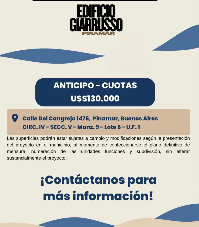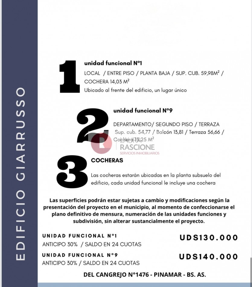 FINANCIACION: ANTICIPO 30% SALDO EN 24 CUOTAS.