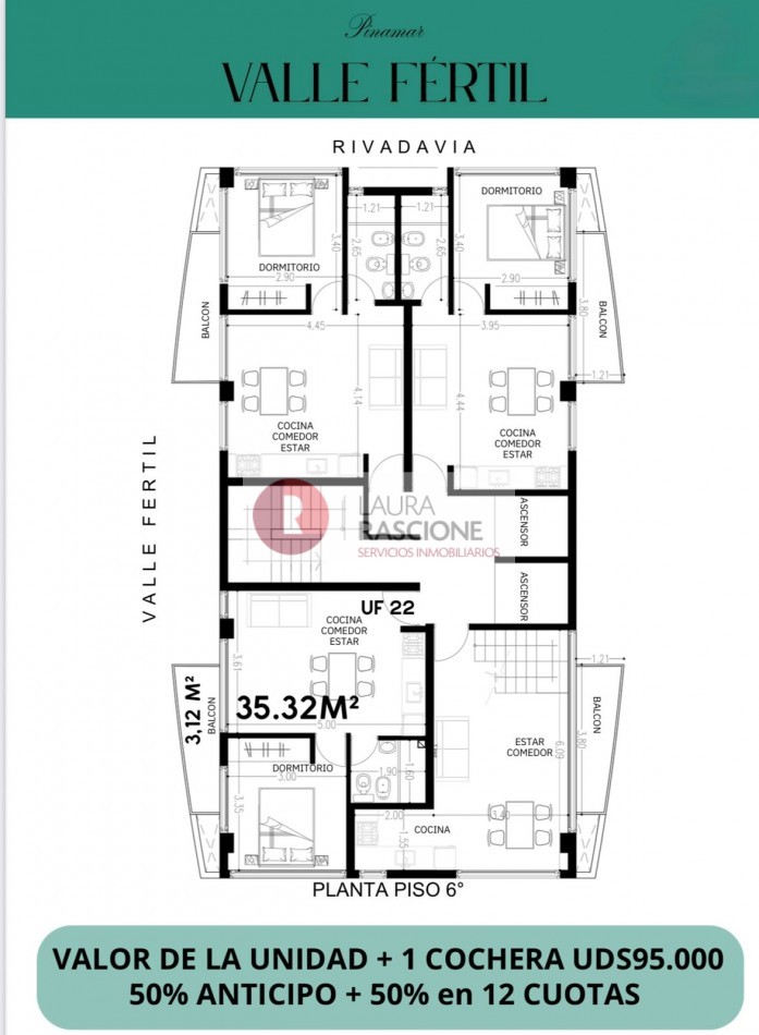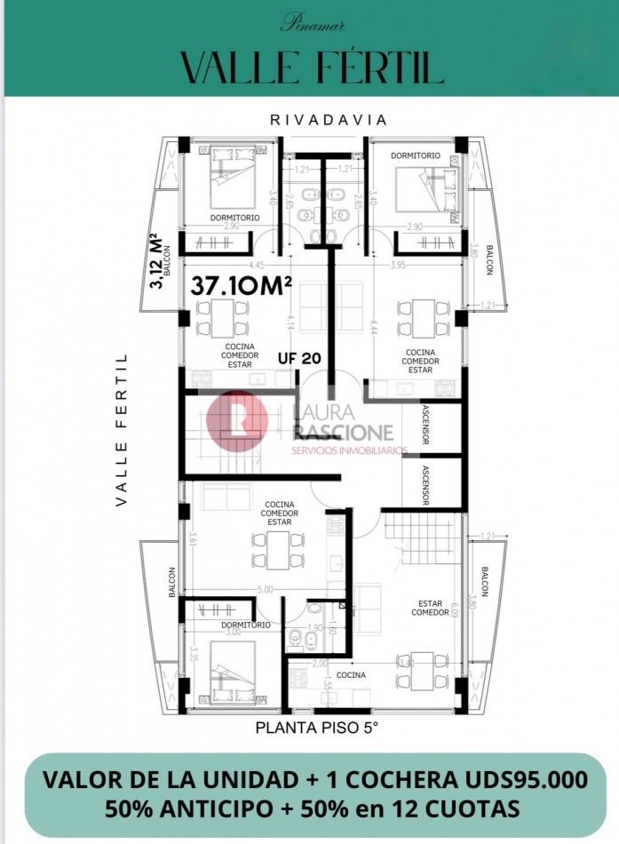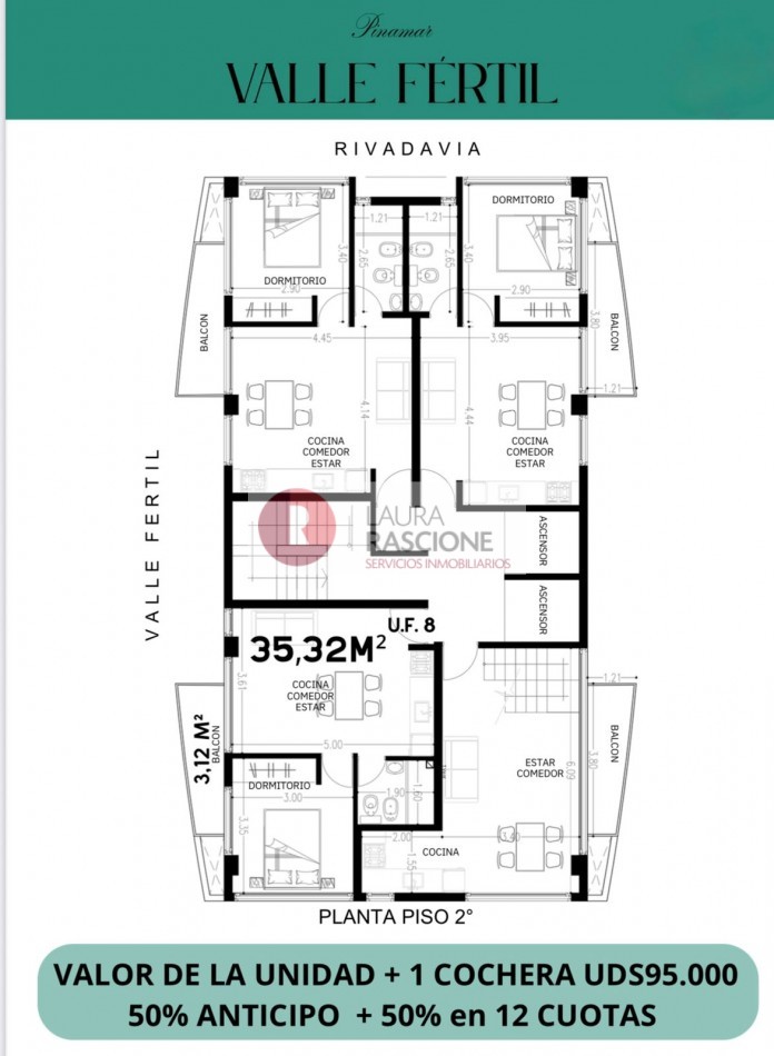 VALOR DE LA UNIDAD + 1 COCHERA USD 95.000 50% ANTICIPO + 50% EN 12 CUOTAS